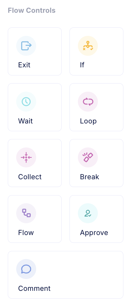 Flow Control elements manage workflow progression.