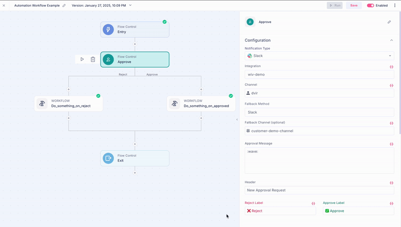 • Approval Message (Slack/Teams): Request approvals through your team messaging apps, with support for icons and custom formatting to enhance your message design