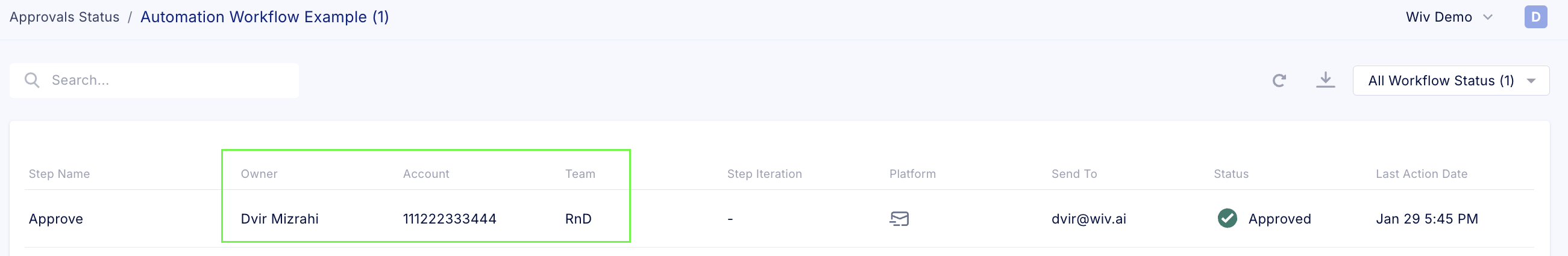 Enhance your approval tracking with custom metadata fields. By adding key-value pairs to your approvals, you can include additional context that appears as columns in the Approvals dashboard. This extra information helps administrators better understand and manage approval requests.