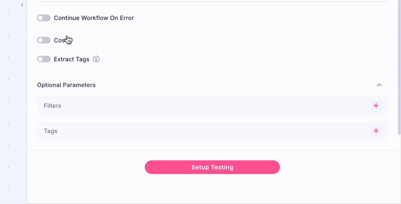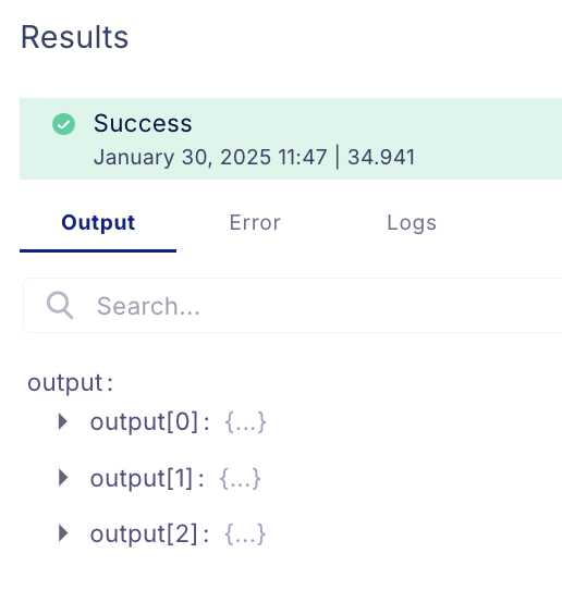 Press on Setup Testing. Make sure that the parameters are correct, and click on "Run Step" to make sure the function is working as intended. You should now see the result. If the step return an empty list, make sure you indeed have detached EBS volumes in that account and region.
