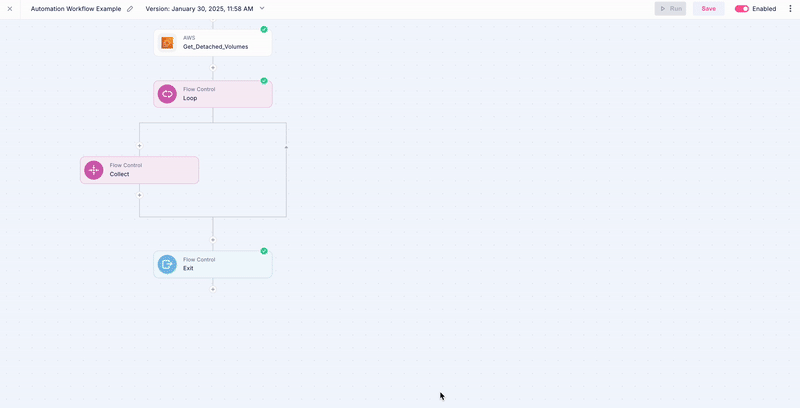 Add a Loop step to iterate over the retrieved unattached disk volumes.