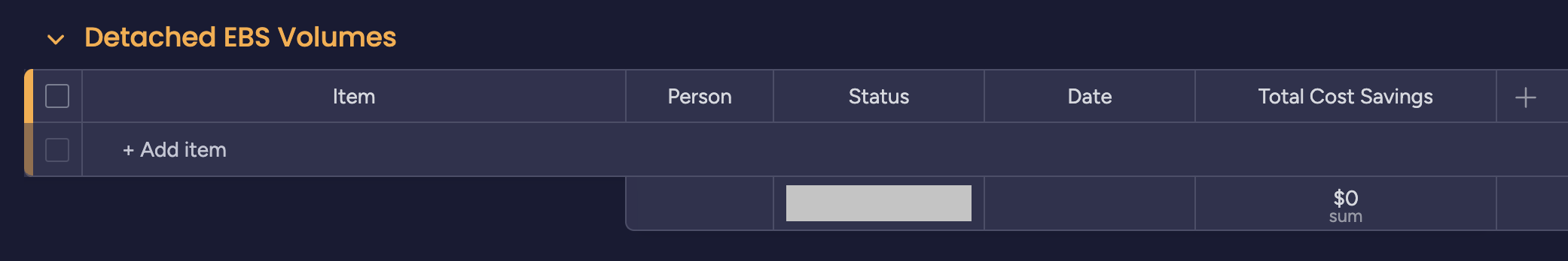 For this implementation, we will focus on the Detached EBS Volume use case, leveraging Monday.com's mutation API to create entries in our project board. Each identified detached volume will trigger an API call that: