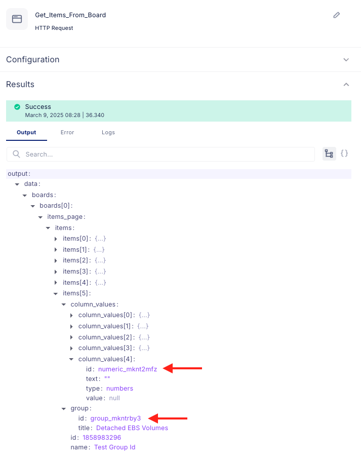 1. Data Retrieval: Using the HTTP step, we connect to Monday.com's API to fetch all items from a specific board, giving us comprehensive visibility into our project data.