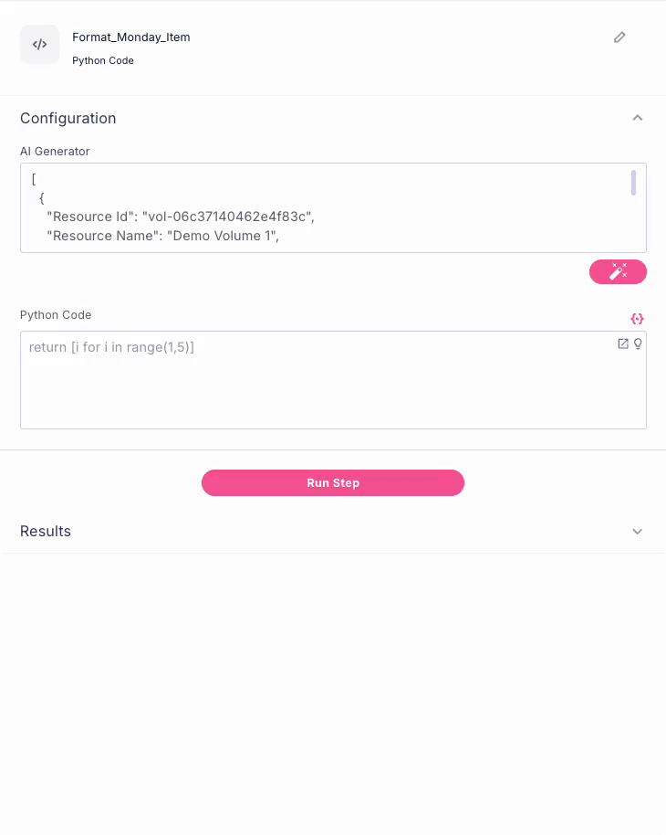 or: Let's convert them to a list, so we'll be able to take more actions. Using our AI prompt in the Python step, we can now have the following code: