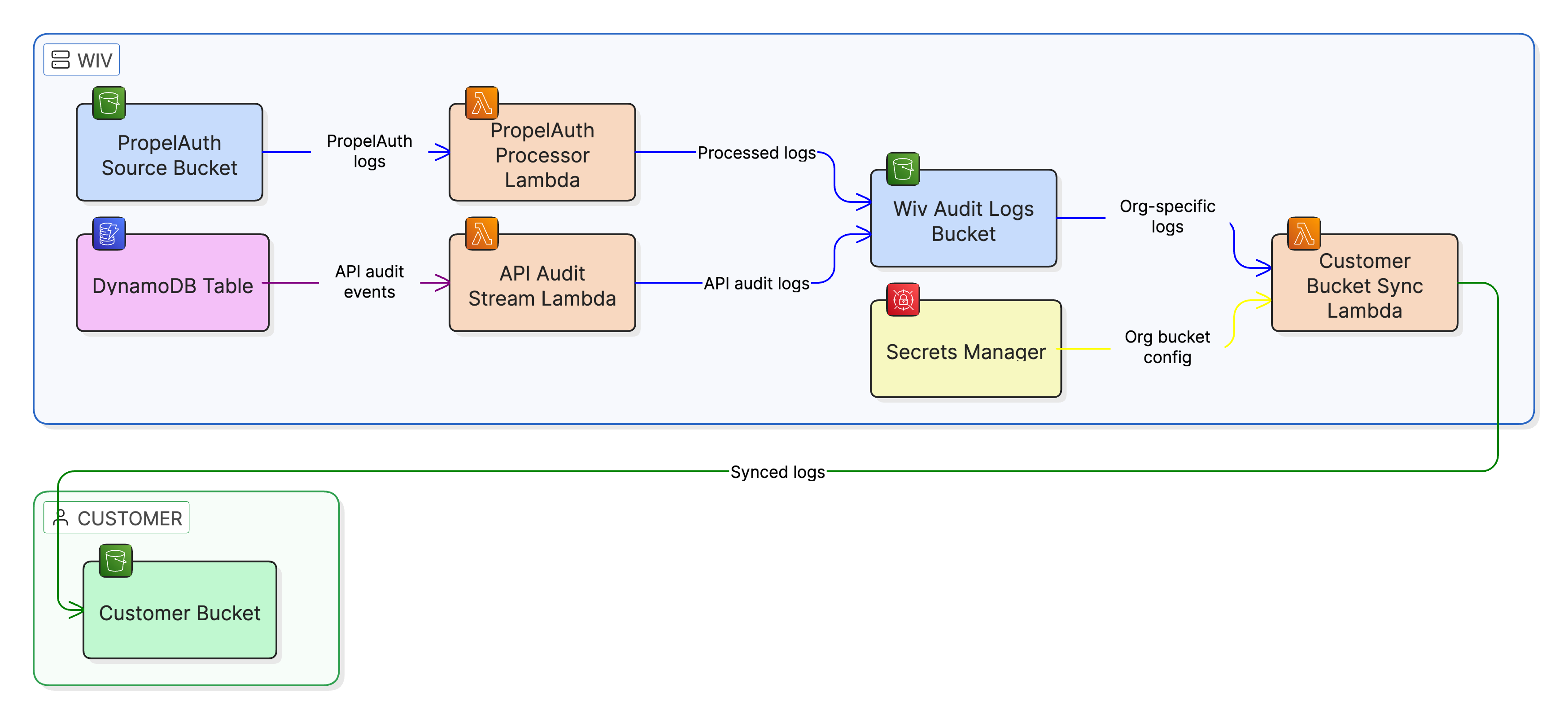 Wiv delivers audit logs to a dedicated Amazon S3 bucket within your AWS account.